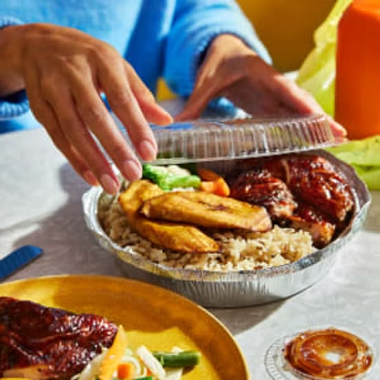 塑料 (PP、PET) 碗 + 盖 | 可回收 | PP 从技术上讲是可回收的, 大多数家庭都可以获得回收服务。确保冲干净剩余的食物。 |