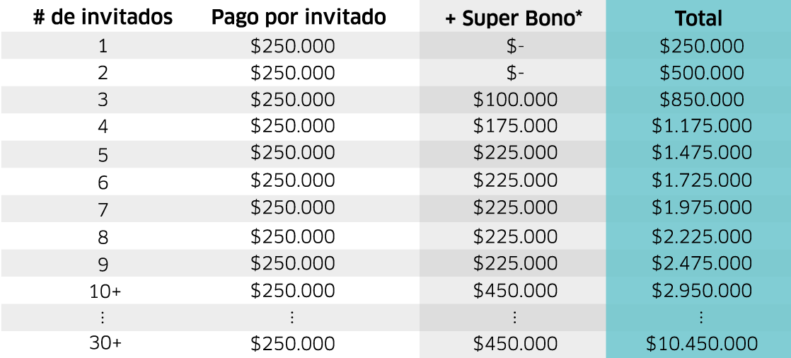 GANA $250.000 por invitado + SUPER BONO*