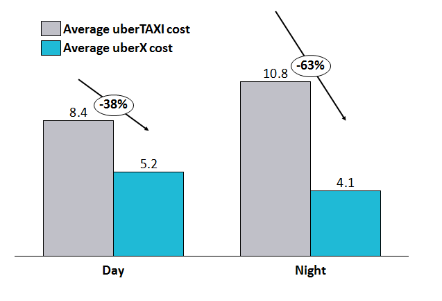 “My uberTAXI to work used to be 14€, with uberX it’s only 8€. Almost half the price!” – Remi, C.“uberTAXI to Airport at night: 54€ | uberX?: 21€. A real no brainer!” – Vasilis, J.