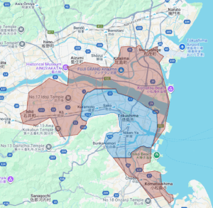 - 徳島県:徳島市(石井町、北島町、松茂町、藍住町の一部エリア含む)、小松島市