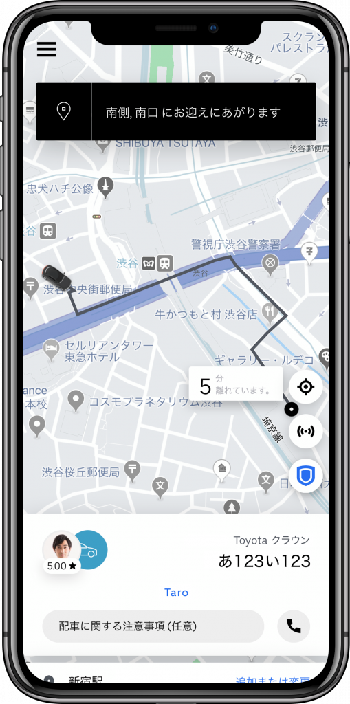 3. お迎えに伺う車の車種、ナンバー、ドライバー名などが表示されます。