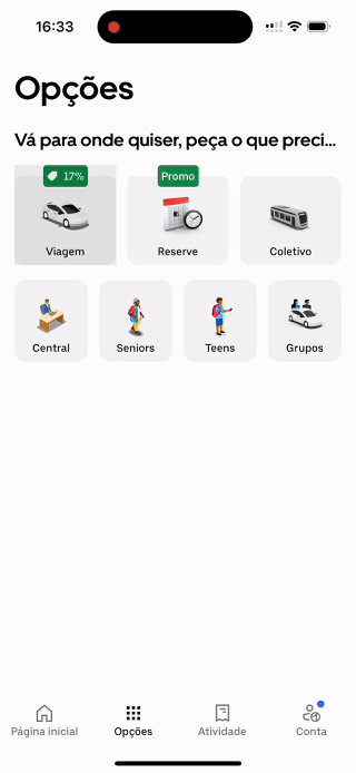 - Mulheres Motoristas: As usuárias verão a opção “Mulheres Motoristas” entre os produtos disponíveis para solicitar uma viagem de forma imediata na tela inicial. Ao selecionar essa opção, o app tentará parear a viagem com uma motorista mulher. Se o tempo de espera for muito longo, o aplicativo perguntará à usuária se ela deseja continuar aguardando ou se prefere redirecionar a viagem para o motorista mais próximo.