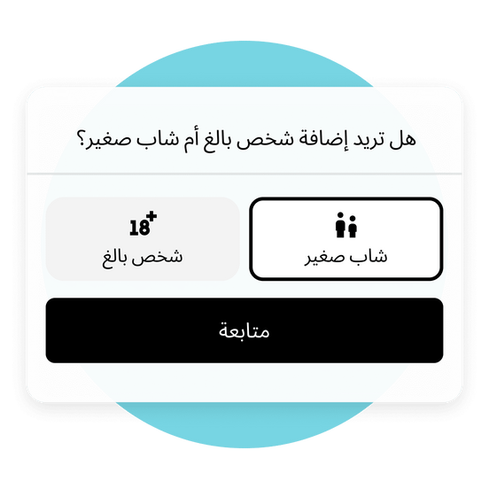 تمنح حسابات الشباب الصغار ابنك حرية طلب مشاويره الخاصة، وكل ذلك تحت إشرافك. بالإضافة إلى ذلك، مع خصائص السلامة المباشرة والتحديثات في الوقت الفعلي، يمكنك متابعة المشوار من نقطة الالتقاء إلى نقطة النزول.