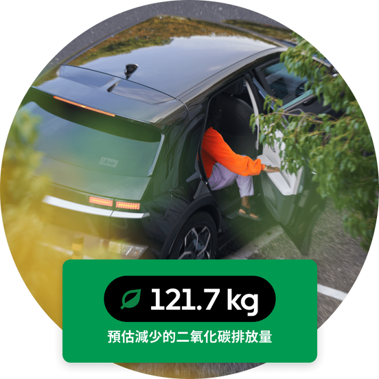 透過 Uber 選擇更環保的行程選項,即可隨時掌握預估的減排量。目前控制台已加入您的 Lime 電動腳踏車和電動滑板車行程,以及 UberX Share 行程。Tembici 腳踏車即將推出。