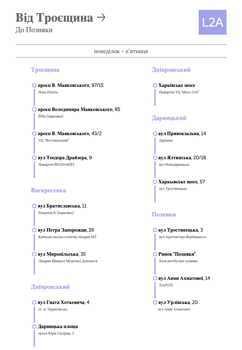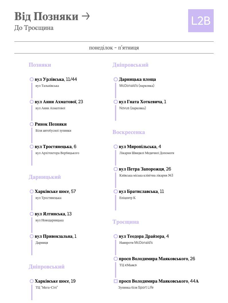 - P2: Південна Борщагівка – Бесарабка – Південна Борщагівка