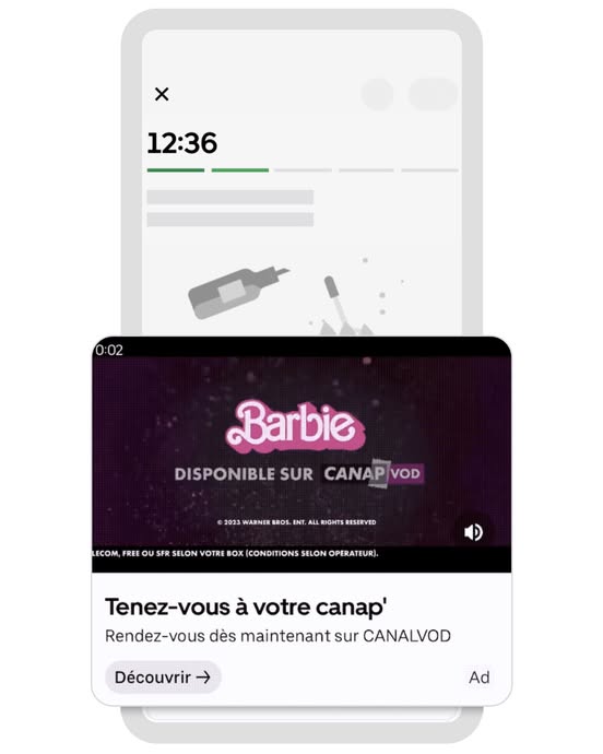 With a play on words, the streaming service targeted Uber Eats users (specifically those who order at night) with Post-Checkout Ads. The video creative encouraged a night in watching CANAL+ movies and shows.