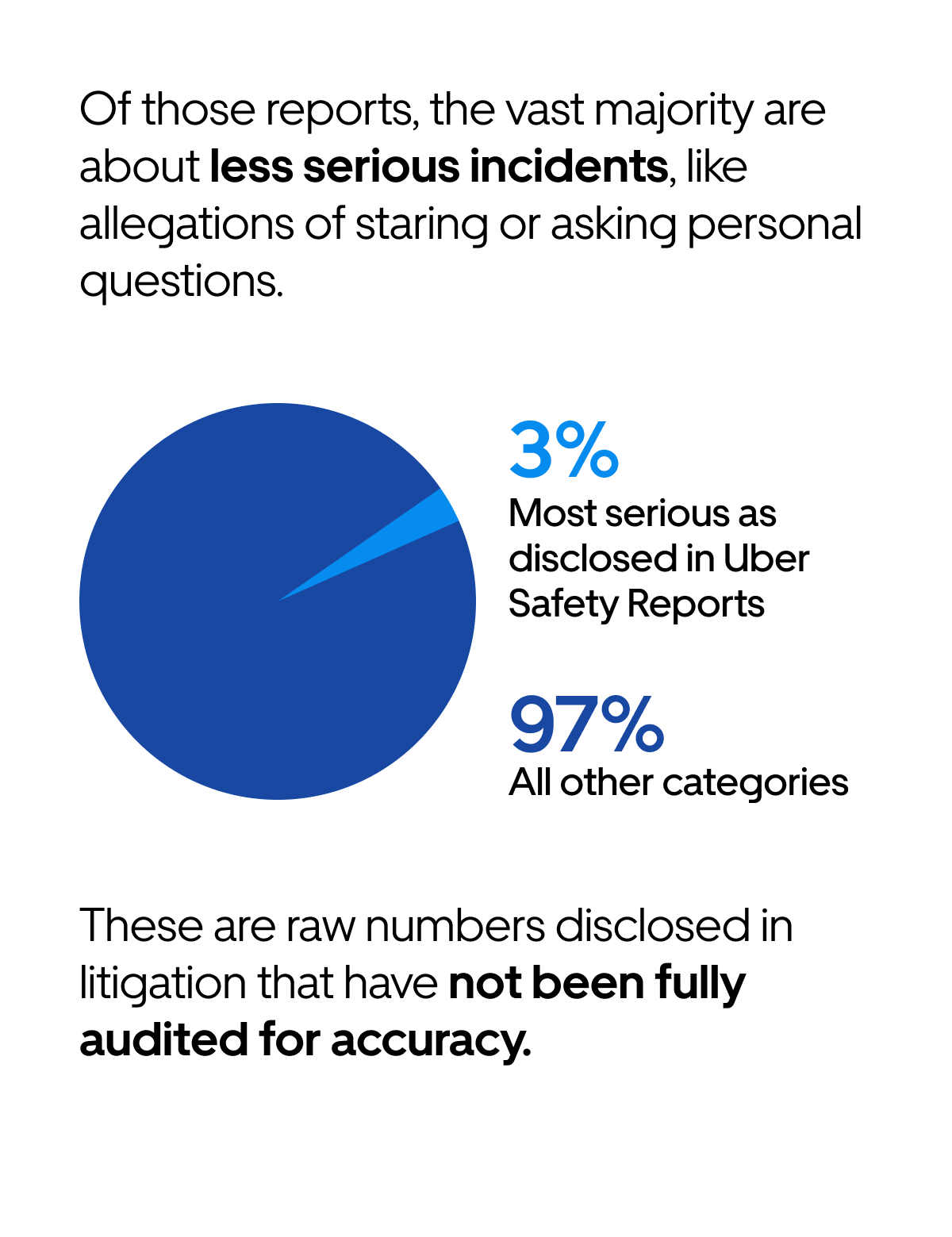 It’s important to say that just because we don’t publicly disclose a certain type of report doesn’t mean we don’t do anything with them. On the contrary, we track feedback closely and if, for example, we receive multiple safety reports, even if they are less serious, we will take swift action to ban that driver or rider from Uber.