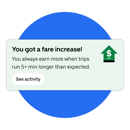 Unexpected delays—like traffic or detours—can make trips run longer than expected. Now, with a delayed ride guarantee, you’ll automatically earn more anytime a ride lasts 5 minutes more than estimated from pickup to dropoff. It’s our way of making sure your time is always valued and every trip is worth your effort.
