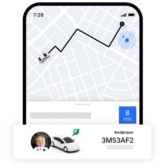 Once you’re matched with a driver, you’ll see their picture and vehicle details and can track their arrival on the map.