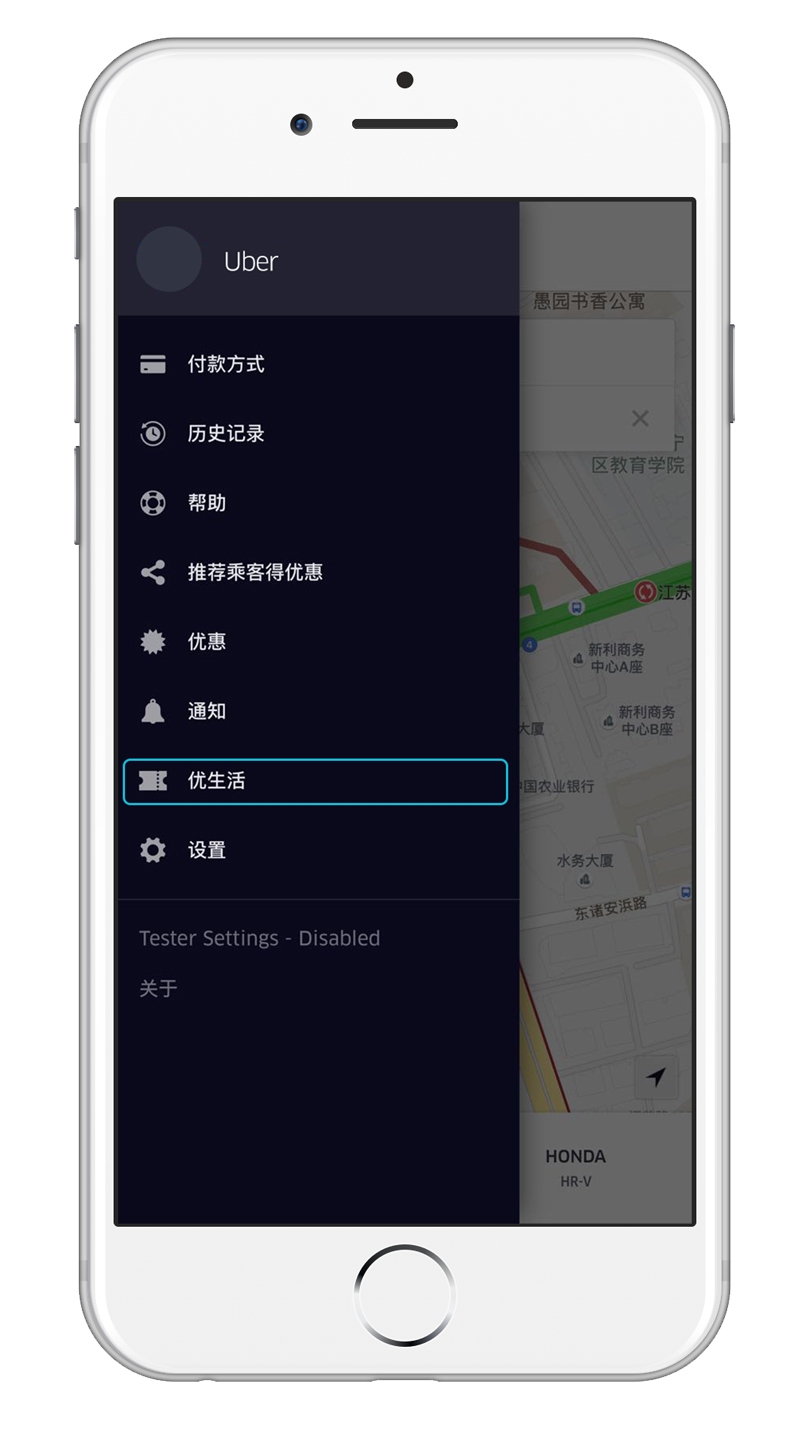 在已开通优生活的城市,用户只要点击优步App的左上角,就会在边栏中看到“优生活”这一新增入口,包括各种好玩的活动、独特的去处、有趣的故事等,用户可以点击感兴趣的内容、并参与其中。